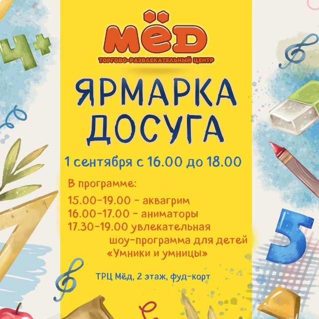 На ярмарке ваши дети смогут познакомиться с разнообразными кружками и секциями, выбрать то занятие, которое им по душе, и записаться прямо на месте.