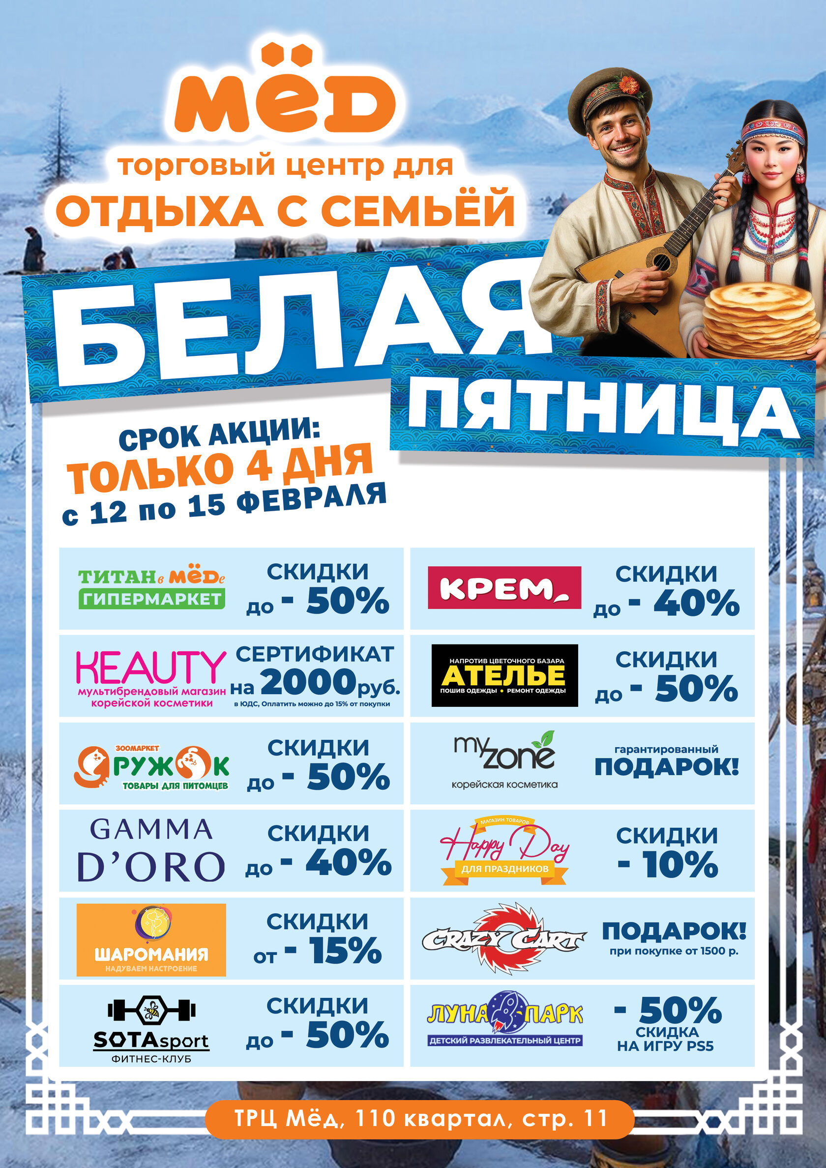 Торгово-развлекательный центр Мёд стартует в преддверии светлого праздника Сагалгаан с супер акцией — "Белая пятница"! ❄️🛍️