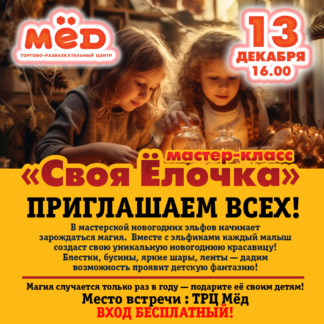 🎄 В мастерской новогодних эльфов начинает зарождаться магия. Вместе с эльфиками каждый малыш создаст свою уникальную новогоднюю красавицу! Блестки,бусины , яркие шары, ленты — дадим возможность проявит детскую фантазию!